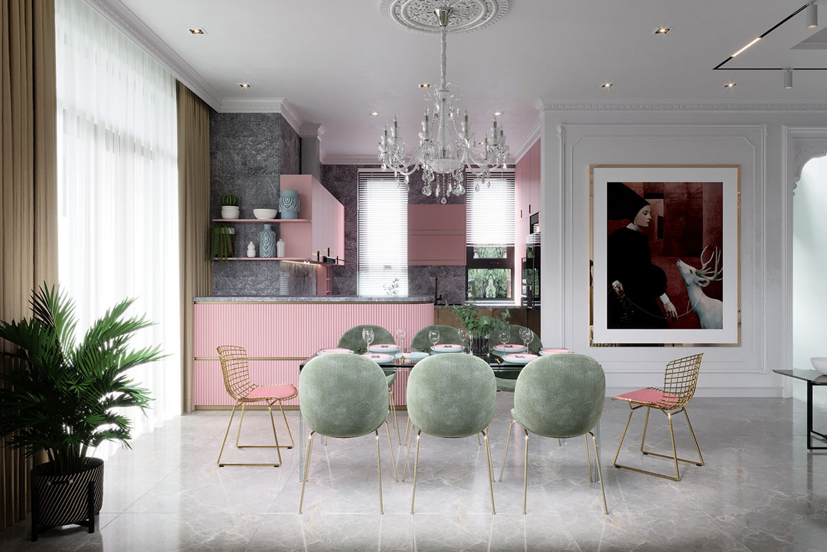 夢幻般的家具為這個酷酷的奶油色內飾帶來了形狀創意的精髓,由中國渲染師夢太初形象化。雖然這里的裝飾主要是灰白的,但對比的時刻產生了清晰度和戲劇性。