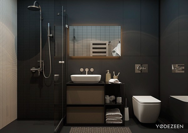 啞光黑色覆層為浴室增添了特別奢華的魅力。