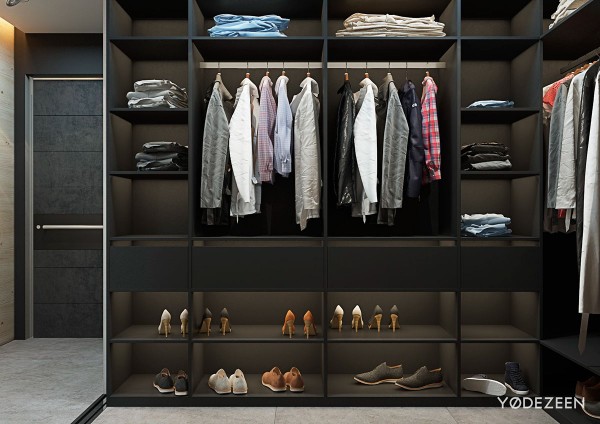 巧妙的組織使壁櫥感覺比實際更寬敞——鞋子、襯衫和掛衣的壁龕覆蓋了所有的底座。
