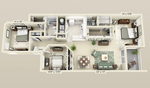 本文將展示許多種可視化的三居室布局,幫助你更好的運用時尚家具和獨特的布局。