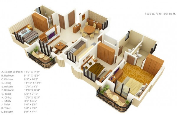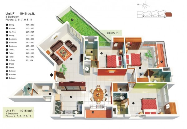 這種設計承認戶外空間和隱私的重要性,為每間臥室提供獨立的陽臺,并允許居民撤退到自己的角落,或在正式的用餐區和寬敞的廚房里交流。