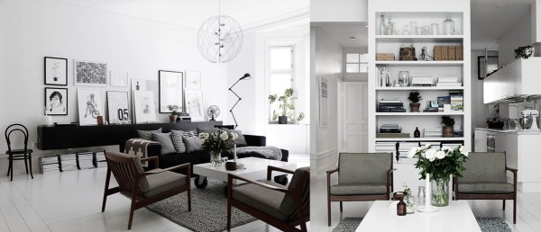 黑色、白色、灰色和天然木材為這個起居室帶來了一種精致的空氣,可以直接從另一個時代中走出來。