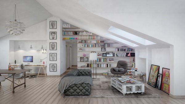 如果你沒有華麗的深木地板,可以考慮用粉刷粉刷它們以獲得藝術閣樓效果。