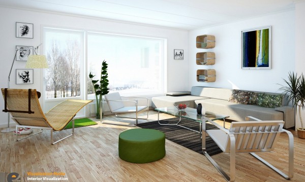 淺色木材有助于在地板以及椅子和咖啡桌等家具中開辟空間。