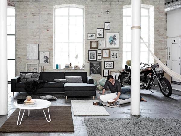 如圖所示,在較小的開放空間中將您的沙發用作房間隔板。