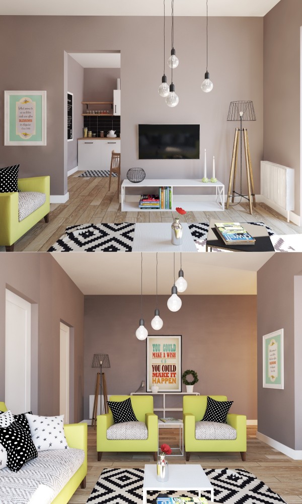 這是使用時尚亮黃色的另一種方式,為這個客廳增添時尚氣息。