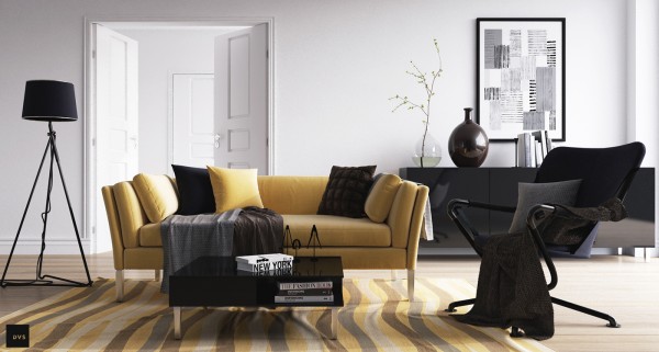 這款夢幻般的芥末色沙發是黑色、白色和黃色類別的后一款。