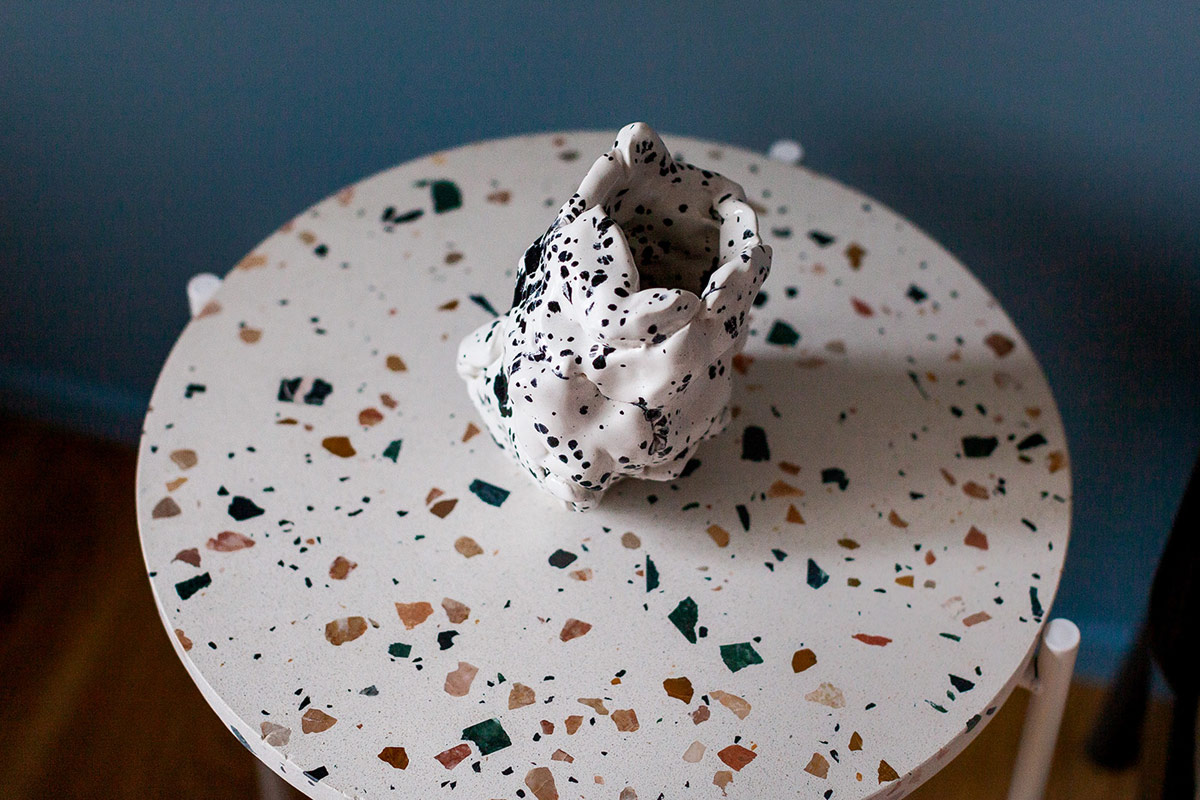 水磨石床頭柜引入了一種模式。