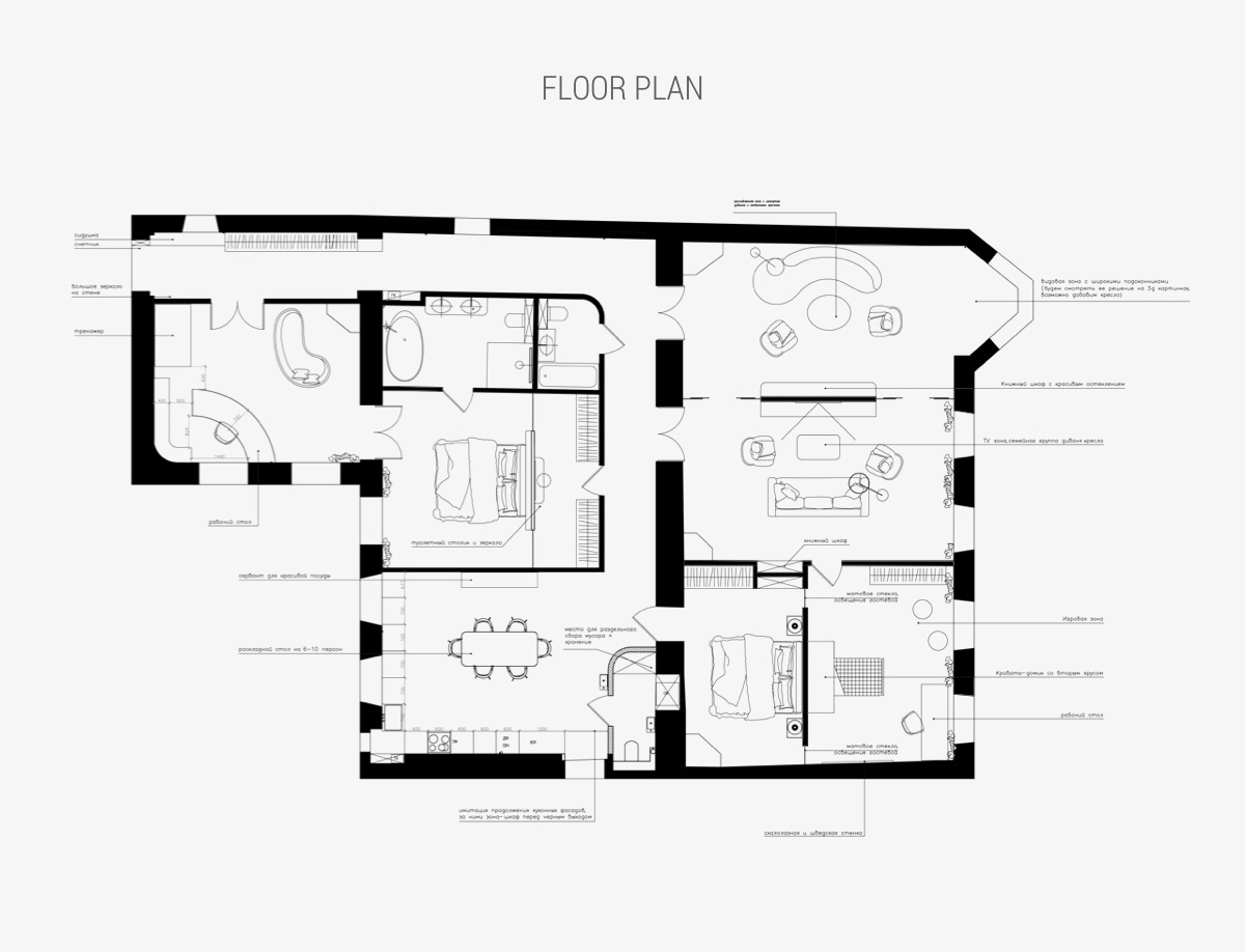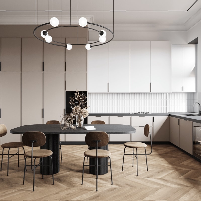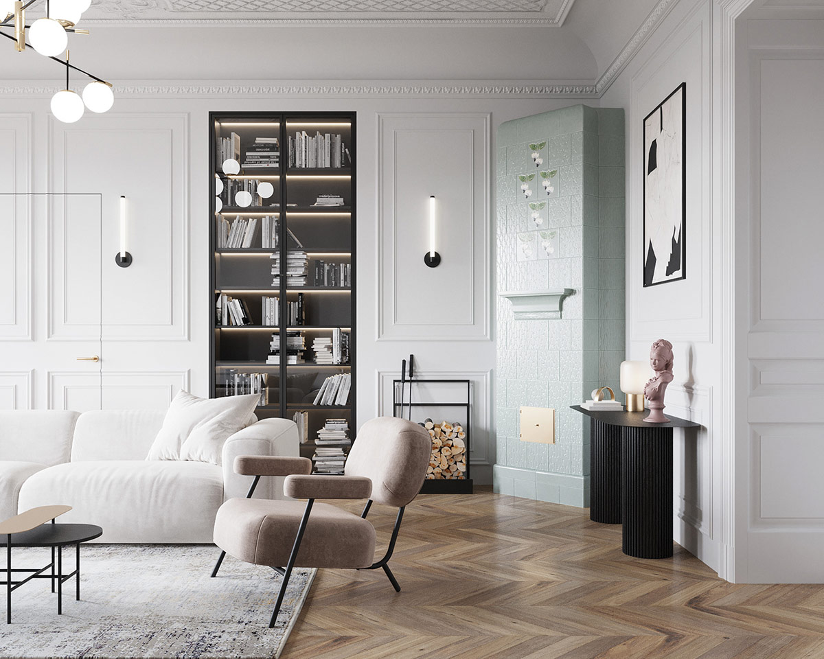 保存完好的歷史遺產為這座精致的公寓帶來了新古典主義的錯綜復雜,俯瞰莫斯科大劇院,位于俄羅斯圣彼得堡彼得格勒卡區的中心。由Rindes 設計,這座優雅的住宅擁有原始的皇冠造型和令人印象深刻的高天花板。護墻板被用來偽裝室內門,獨特的油漆效果在微妙的鼠尾草綠色和粉紅色調色板下扭曲了空間感知。清新的現代家具物品和現代裝飾配件與更多裝飾元素形成干凈的并置,而引人注目的現代燈具則增添了煥然一新的宏偉感。家庭參觀結束時包括平面圖。