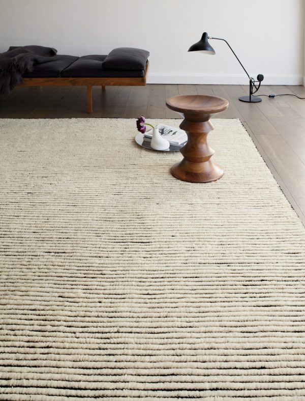 手工對比色大號羊毛地毯:由 Christina Tullock 和 Sam Moradzadeh 創作,Esker 地毯通過使用紋理和色調而擁有富有表現力的裝飾外觀。這件單品采用手工編織成排,在平織和簇絨之間交替,營造出引人注目的脊狀效果。