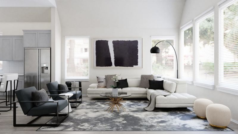 如果您是極簡主義者,這種黑白現代客廳-餐廳設計理念非常適合您。憑借雙色調的調色板,房間里最引人注目的無疑是搭配黑色、白色和灰色的靠墊。